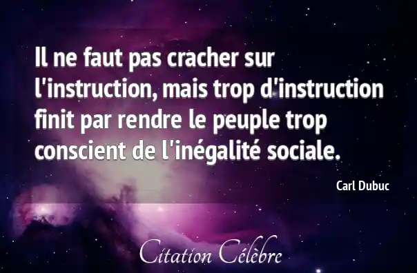 Il ne faut pas cracher sur l'instruction, mais trop d'instruction finit par rendre le peuple trop conscient de l'inégalité sociale.