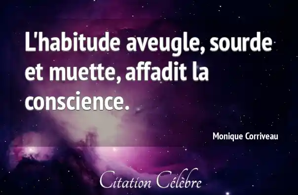 Citation Monique Corriveau conscience : L'habitude aveugle, sourde et muette, affadit la conscience....