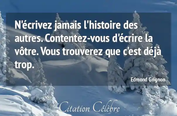 N'écrivez jamais l'histoire des autres. Contentez-vous d'écrire la vôtre. Vous trouverez que c'est déjà trop.