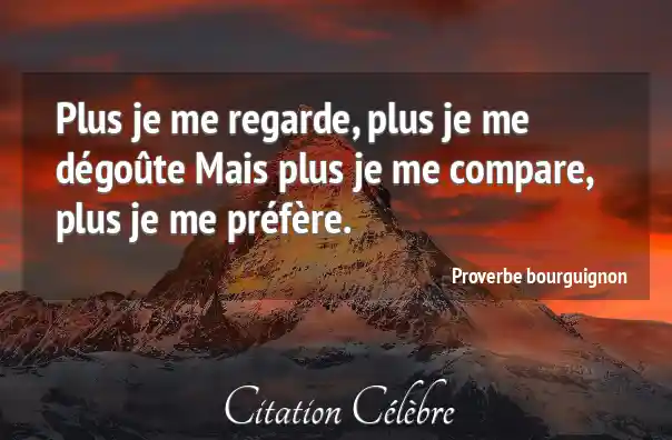 Plus je me regarde, plus je me dégoûte Mais plus je me compare, plus je me préfère.