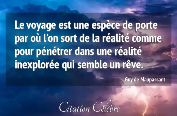 Le voyage est une espèce de porte par où l'on sort de la réalité comme pour pénétrer dans une réalité inexplorée qui semble un rêve.