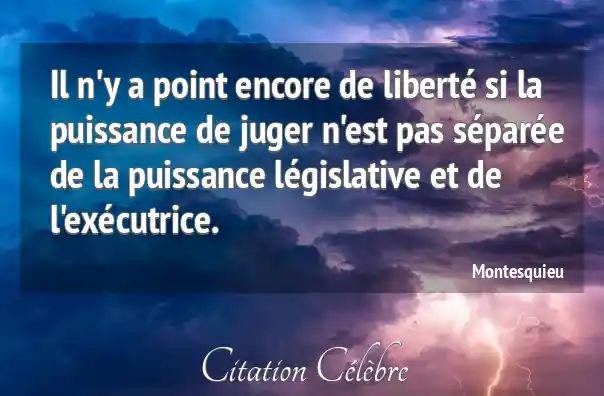 Il n'y a point encore de liberté si la puissance de juger n'est pas séparée de la puissance législative et de l'exécutrice.