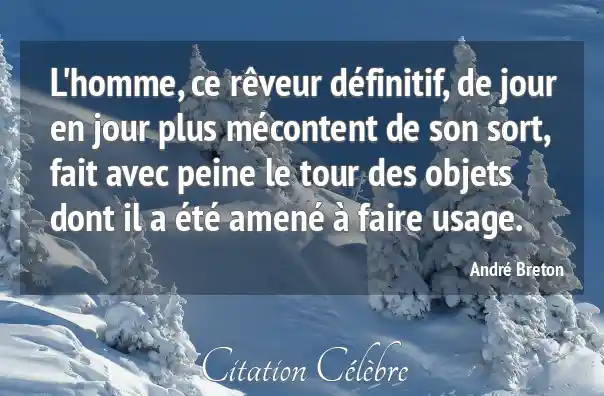 L'homme, ce rêveur définitif, de jour en jour plus mécontent de son sort, fait avec peine le tour des objets dont il a été amené à faire usage.