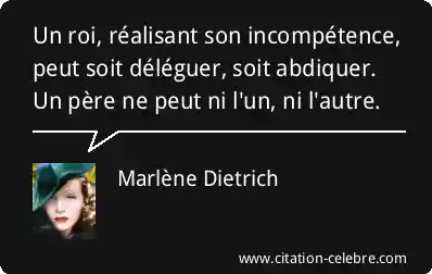 Un roi, réalisant son incompétence, peut soit déléguer, soit abdiquer. Un père ne peut ni l'un, ni l'autre.