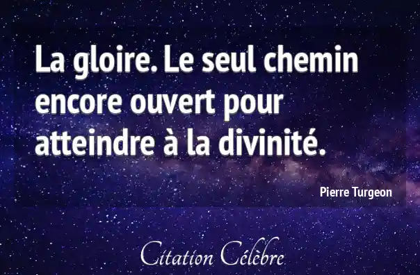 La gloire. Le seul chemin encore ouvert pour atteindre à la divinité.
