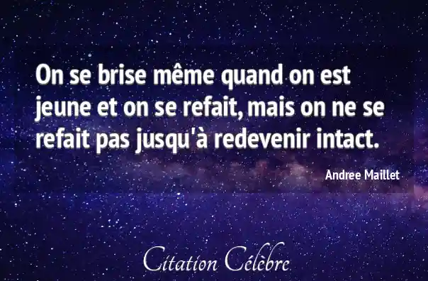 On se brise même quand on est jeune et on se refait, mais on ne se refait pas jusqu'à redevenir intact.