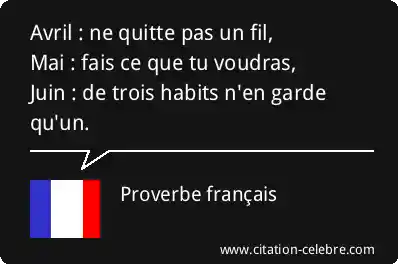 Proverbe  Français Juin : Avril : ne quitte pas un fil, Mai : fais...