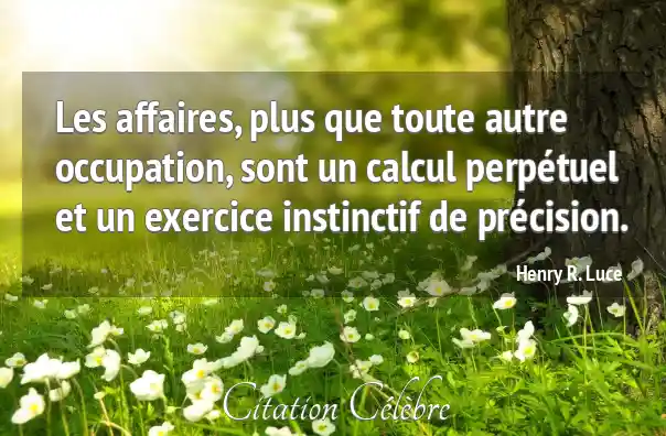 Les affaires, plus que toute autre occupation, sont un calcul perpétuel et un exercice instinctif de précision.
