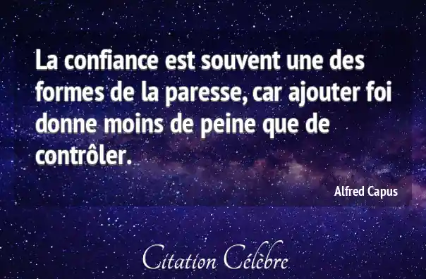 La confiance est souvent une des formes de la paresse, car ajouter foi donne moins de peine que de contrôler.