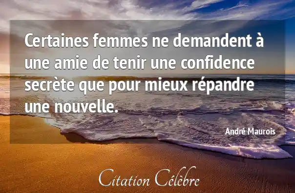 Certaines femmes ne demandent à une amie de tenir une confidence secrète que pour mieux répandre une nouvelle.