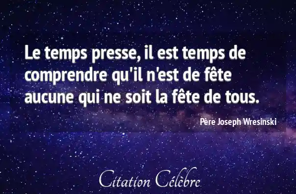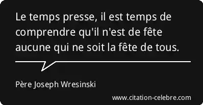 Le temps presse, il est temps de comprendre qu'il n'est de fête aucune qui ne soit la fête de tous.
