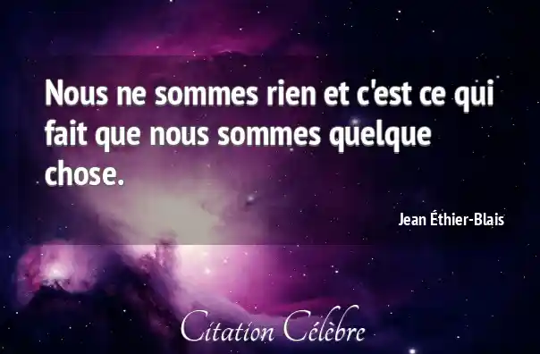 Nous ne sommes rien et c'est ce qui fait que nous sommes quelque chose.