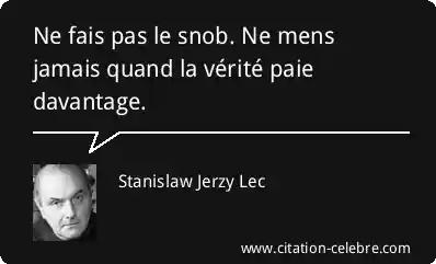 Ne fais pas le snob. Ne mens jamais quand la vérité paie davantage.