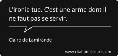 L'ironie tue. C'est une arme dont il ne faut pas se servir.