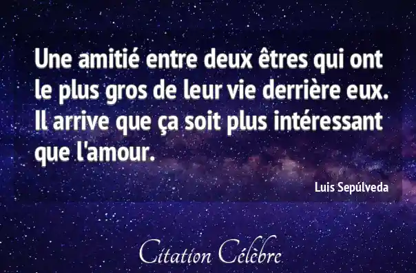 Une amitié entre deux êtres qui ont le plus gros de leur vie derrière eux. Il arrive que ça soit plus intéressant que l'amour.