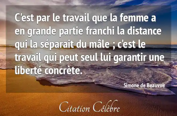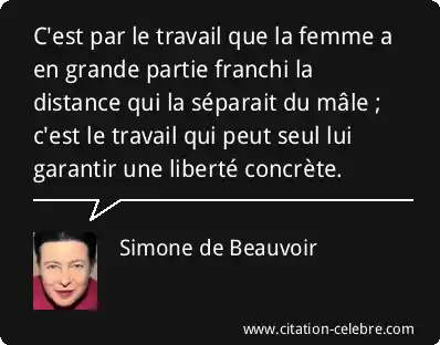 C'est par le travail que la femme a en grande partie franchi la distance qui la séparait du mâle ; c'est le travail qui peut seul lui garantir une liberté concrète.