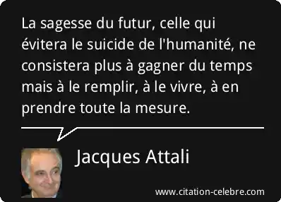 La sagesse du futur, celle qui évitera le suicide de l'humanité, ne consistera plus à gagner du temps mais à le remplir, à le vivre, à en prendre toute la mesure.