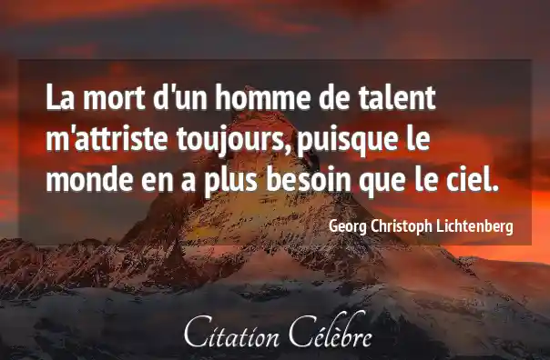 La mort d'un homme de talent m'attriste toujours, puisque le monde en a plus besoin que le ciel.