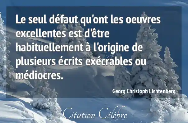 Le seul défaut qu'ont les oeuvres excellentes est d'être habituellement à l'origine de plusieurs écrits exécrables ou médiocres.