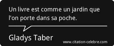 Citation Gladys Taber jardin : Un livre est comme un jardin que l'on porte dans...