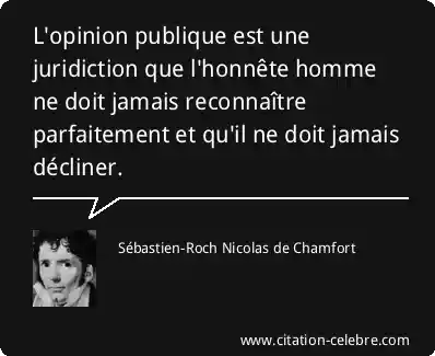 L'opinion publique est une juridiction que l'honnête homme ne doit jamais reconnaître parfaitement et qu'il ne doit jamais décliner.