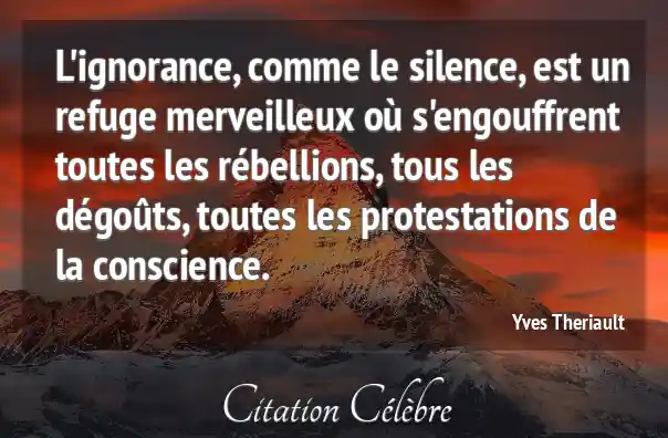 L'ignorance, comme le silence, est un refuge merveilleux où s'engouffrent toutes les rébellions, tous les dégoûts, toutes les protestations de la conscience.