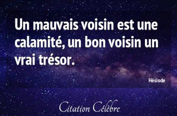Un mauvais voisin est une calamité, un bon voisin un vrai trésor.