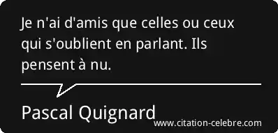 Je n'ai d'amis que celles ou ceux qui s'oublient en parlant. Ils pensent à nu.