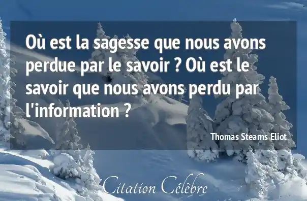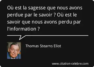 Où est la sagesse que nous avons perdue par le savoir ? Où est le savoir que nous avons perdu par l'information ?