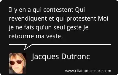Il y en a qui contestent Qui revendiquent et qui protestent Moi je ne fais qu'un seul geste Je retourne ma veste.