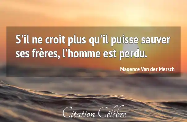 Citation Maxence Van der Mersch homme : S'il ne croit plus qu'il puisse sauver ses frères, l'homme...