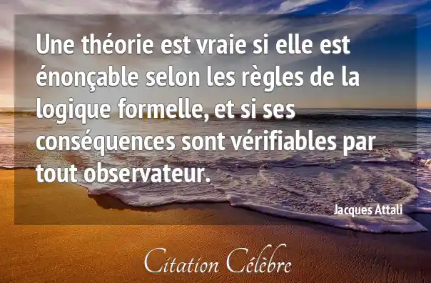 Une théorie est vraie si elle est énonçable selon les règles de la logique formelle, et si ses conséquences sont vérifiables par tout observateur.
