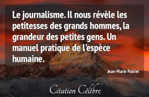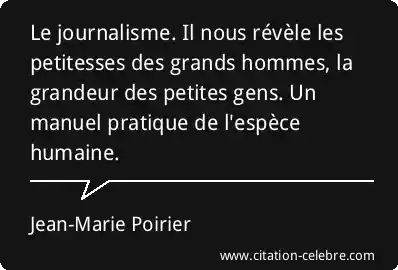 Le journalisme. Il nous révèle les petitesses des grands hommes, la grandeur des petites gens. Un manuel pratique de l'espèce humaine.