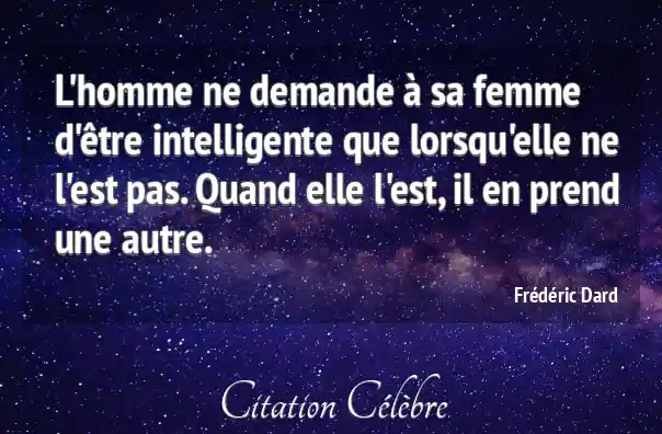 L'homme ne demande à sa femme d'être intelligente que lorsqu'elle ne l'est pas. Quand elle l'est, il en prend une autre.