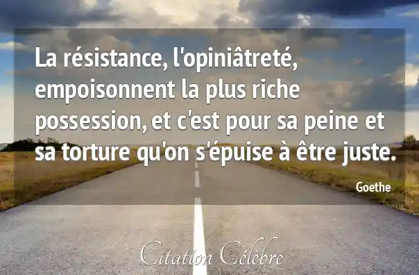 La résistance, l'opiniâtreté, empoisonnent la plus riche possession, et c'est pour sa peine et sa torture qu'on s'épuise à être juste.