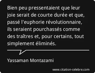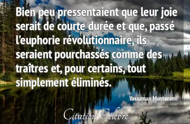 Bien peu pressentaient que leur joie serait de courte durée et que, passé l'euphorie révolutionnaire, ils seraient pourchassés comme des traîtres et, pour certains, tout simplement éliminés.