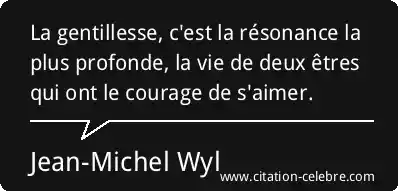 La gentillesse, c'est la résonance la plus profonde, la vie de deux êtres qui ont le courage de s'aimer.