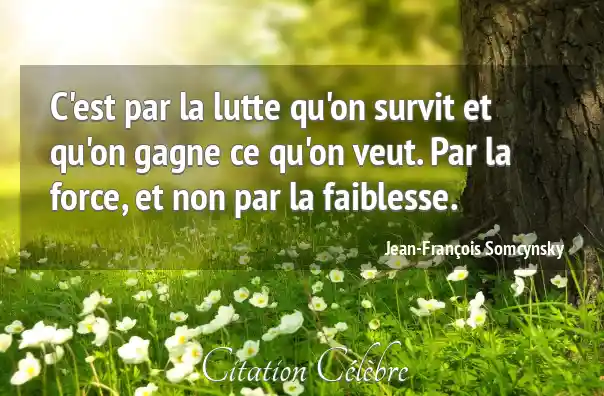 C'est par la lutte qu'on survit et qu'on gagne ce qu'on veut. Par la force, et non par la faiblesse.