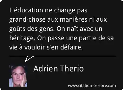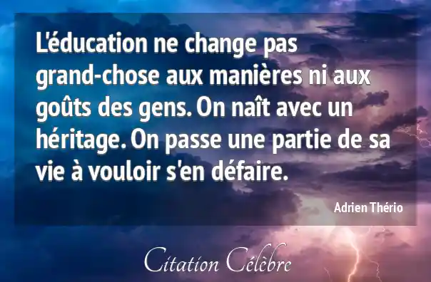 L'éducation ne change pas grand-chose aux manières ni aux goûts des gens. On naît avec un héritage. On passe une partie de sa vie à vouloir s'en défaire.