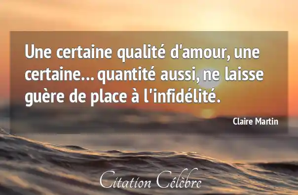 Une certaine qualité d'amour, une certaine... quantité aussi, ne laisse guère de place à l'infidélité.