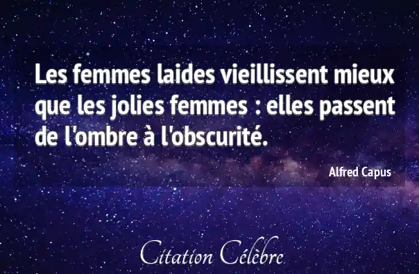 Les femmes laides vieillissent mieux que les jolies femmes : elles passent de l'ombre à l'obscurité.