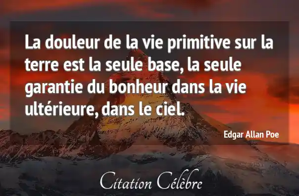 La douleur de la vie primitive sur la terre est la seule base, la seule garantie du bonheur dans la vie ultérieure, dans le ciel.
