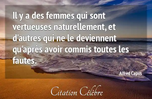 Il y a des femmes qui sont vertueuses naturellement, et d'autres qui ne le deviennent qu'après avoir commis toutes les fautes.