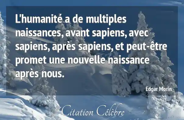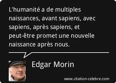 Citation Edgar Morin avant : L'humanité a de multiples naissances, avant sapiens, avec sapiens, après...
