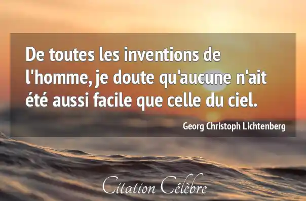 De toutes les inventions de l'homme, je doute qu'aucune n'ait été aussi facile que celle du ciel.