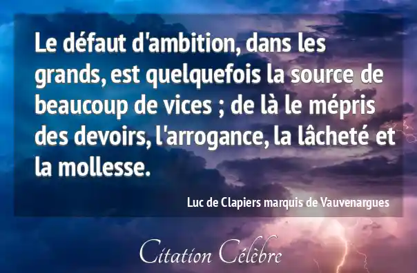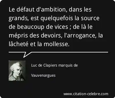 Le défaut d'ambition, dans les grands, est quelquefois la source de beaucoup de vices ; de là le mépris des devoirs, l'arrogance, la lâcheté et la mollesse.
