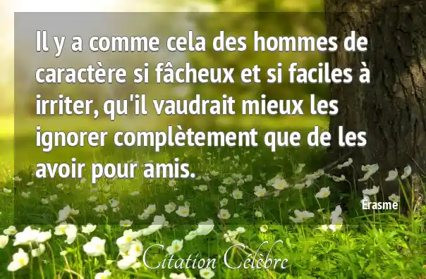 Il y a comme cela des hommes de caractère si fâcheux et si faciles à irriter, qu'il vaudrait mieux les ignorer complètement que de les avoir pour amis.