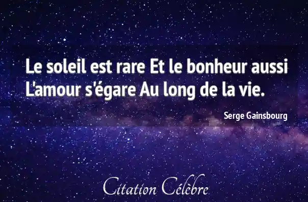 Le soleil est rare Et le bonheur aussi L'amour s'égare Au long de la vie.