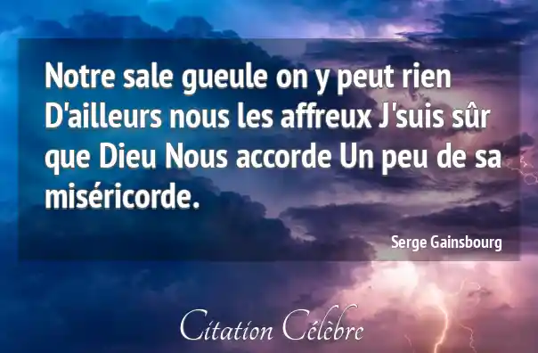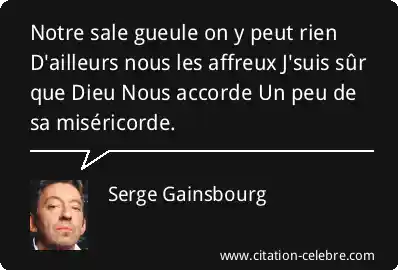 Notre sale gueule on y peut rien D'ailleurs nous les affreux J'suis sûr que Dieu Nous accorde Un peu de sa miséricorde.