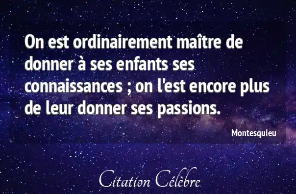On est ordinairement maître de donner à ses enfants ses connaissances ; on l'est encore plus de leur donner ses passions.
